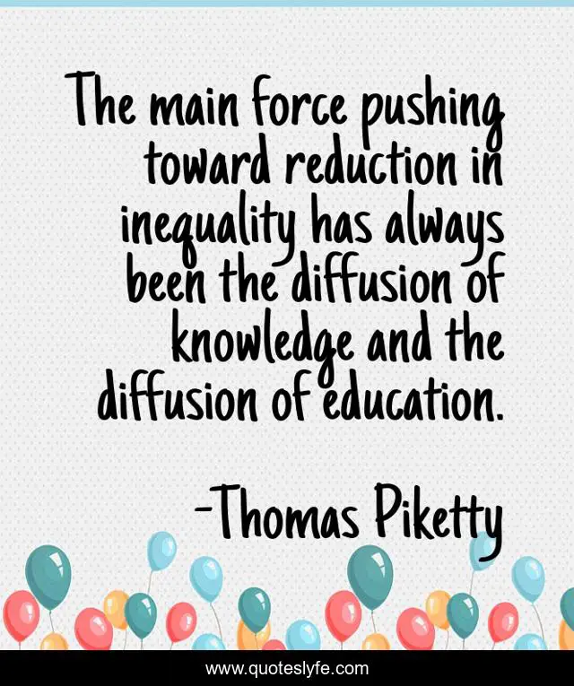 This page presents the quote "The main force pushing toward reduction in inequality has always been the diffusion of knowledge and the diffusion of education.". Author of this quote is Thomas Piketty. This quote is about education, inequality,.
