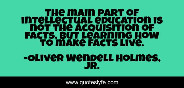 This page presents the quote "The main part of intellectual education is not the acquisition of facts, but learning how to make facts live.". Author of this quote is Oliver Wendell Holmes, Jr.. This quote is about facts, live, education,.