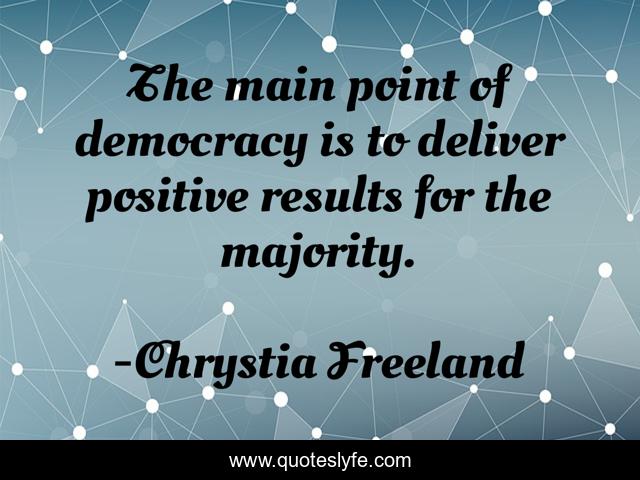 This page presents the quote "The main point of democracy is to deliver positive results for the majority.". Author of this quote is Chrystia Freeland. This quote is about results, democracy, point,.
