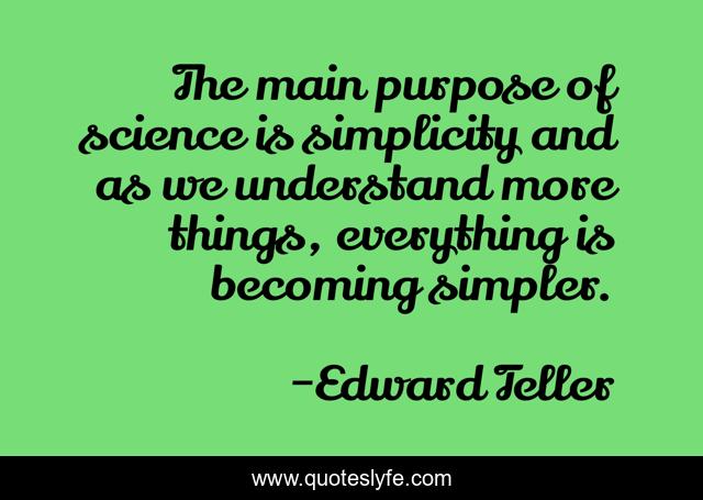 This page presents the quote "The main purpose of science is simplicity and as we understand more things, everything is becoming simpler.". Author of this quote is Edward Teller. This quote is about simplicity, purpose,.