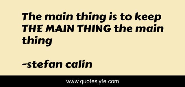 This page presents the quote "The main thing is to keep THE MAIN THING the main thing". Author of this quote is stefan calin. .