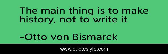 This page presents the quote "The main thing is to make history, not to write it". Author of this quote is Otto von Bismarck. This quote is about enthusiasm, political, inspirational,.