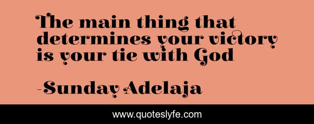 This page presents the quote "The main thing that determines your victory is your tie with God". Author of this quote is Sunday Adelaja. This quote is about god, victory, determine, tie,.