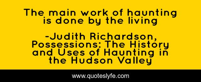 This page presents the quote "The main work of haunting is done by the living". Author of this quote is Judith Richardson, Possessions: The History and Uses of Haunting in the Hudson Valley. This quote is about haunting, ghosts,.