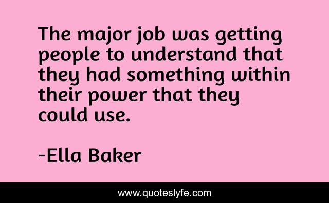This page presents the quote "The major job was getting people to understand that they had something within their power that they could use.". Author of this quote is Ella Baker. .