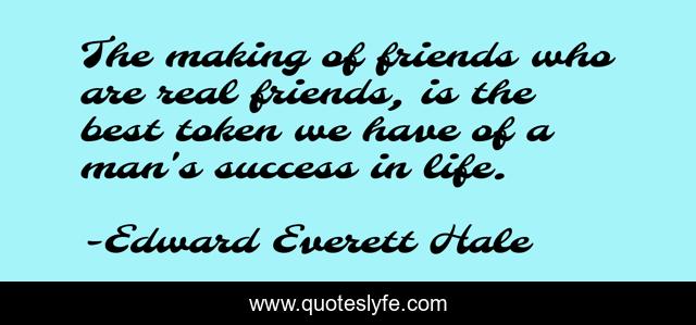 This page presents the quote "The making of friends who are real friends, is the best token we have of a man's success in life.". Author of this quote is Edward Everett Hale. This quote is about life, friends, success,.