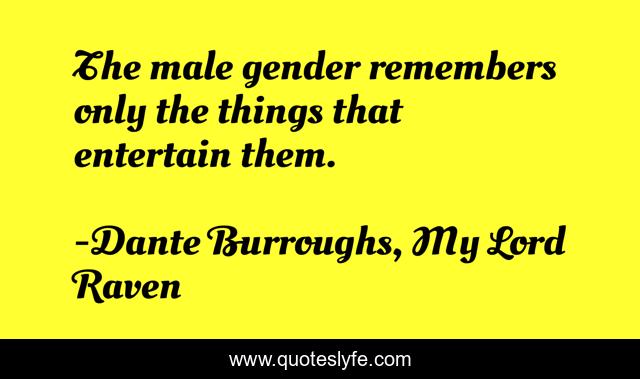 "Dante Burroughs, My Lord Raven Quotes." Quoteslyfe.com, 2025. Tue. 09 Dec. 2025. <https://www.quoteslyfe.com/quote/The-male-gender-remembers-only-the-things-18955>.