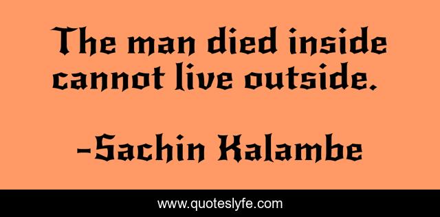 This page presents the quote "The man died inside cannot live outside. ". Author of this quote is Sachin Kalambe. This quote is about life-philosophy, life, life-and-living, death-and-dying, death,.