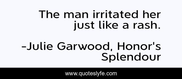 This page presents the quote "The man irritated her just like a rash.". Author of this quote is Julie Garwood, Honor's Splendour. This quote is about romance, historical-romance,.