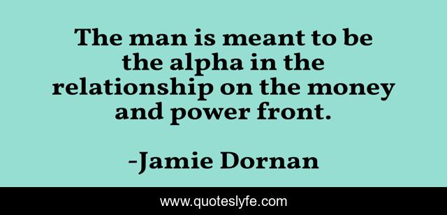 This page presents the quote "The man is meant to be the alpha in the relationship on the money and power front.". Author of this quote is Jamie Dornan. This quote is about money, power, man,.