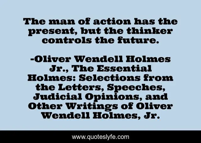 "Oliver Wendell Holmes Jr., The Essential Holmes: Selections from the Letters, Speeches, Judicial Opinions, and Other Writings of Oliver Wendell Holmes, Jr. Quotes." Quoteslyfe.com, 2026. Fri. 02 Jan. 2026. <https://www.quoteslyfe.com/quote/The-man-of-action-has-the-present-162810>.