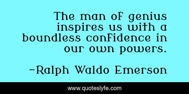 This page presents the quote "The man of genius inspires us with a boundless confidence in our own powers.". Author of this quote is Ralph Waldo Emerson. This quote is about genius, confidence, inspires,.