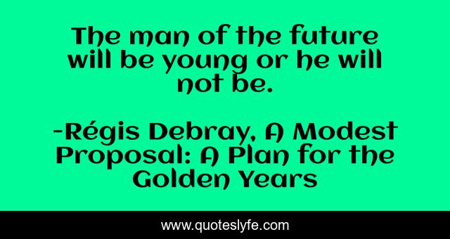 This page presents the quote "The man of the future will be young or he will not be.". Author of this quote is Régis Debray, A Modest Proposal: A Plan for the Golden Years. This quote is about youth, french-philosophy, future, post-modernism,.