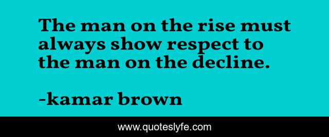 This page presents the quote "The man on the rise must always show respect to the man on the decline.". Author of this quote is kamar brown. This quote is about life, humble, honor, success,.