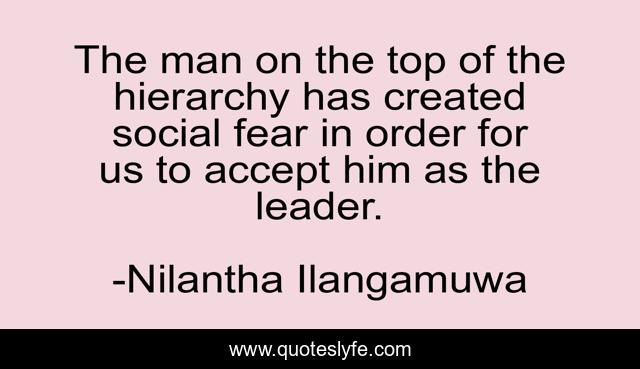 This page presents the quote "The man on the top of the hierarchy has created social fear in order for us to accept him as the leader.". Author of this quote is Nilantha Ilangamuwa. This quote is about justice, freedom, liberty,.