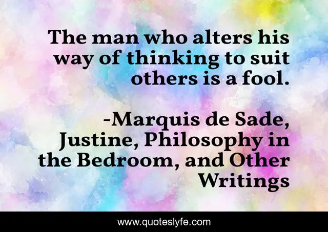 This page presents the quote "The man who alters his way of thinking to suit others is a fool.". Author of this quote is Marquis de Sade, Justine, Philosophy in the Bedroom, and Other Writings. .
