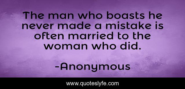 This page presents the quote "The man who boasts he never made a mistake is often married to the woman who did.". Author of this quote is Anonymous. This quote is about love, marriage, affection,.