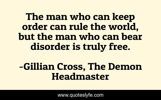 This page presents the quote "The man who can keep order can rule the world, but the man who can bear disorder is truly free.". Author of this quote is Gillian Cross, The Demon Headmaster. This quote is about free-will, freedom-of-thought, choice,.