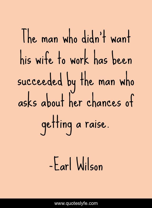This page presents the quote "The man who didn't want his wife to work has been succeeded by the man who asks about her chances of getting a raise.". Author of this quote is Earl Wilson. This quote is about work, man, wife,.