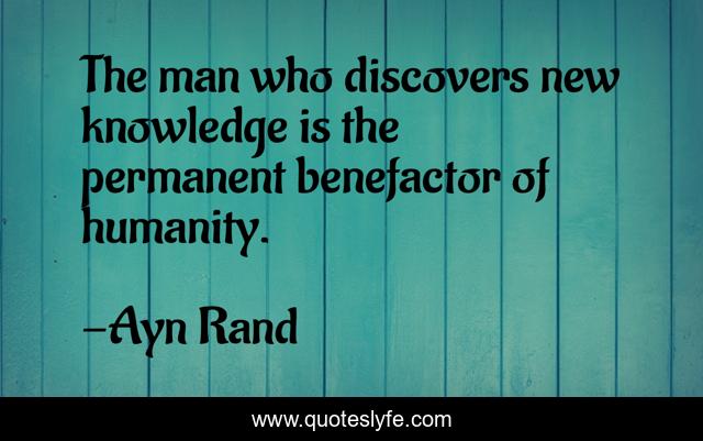 This page presents the quote "The man who discovers new knowledge is the permanent benefactor of humanity.". Author of this quote is Ayn Rand. .