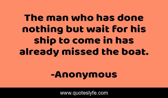 This page presents the quote "The man who has done nothing but wait for his ship to come in has already missed the boat.". Author of this quote is Anonymous. .