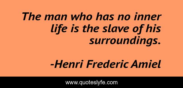 This page presents the quote "The man who has no inner life is the slave of his surroundings.". Author of this quote is Henri Frederic Amiel. .