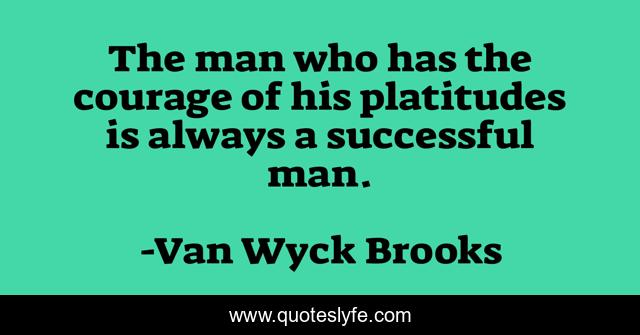 This page presents the quote "The man who has the courage of his platitudes is always a successful man.". Author of this quote is Van Wyck Brooks. This quote is about successful, man,.