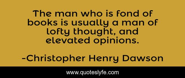 This page presents the quote "The man who is fond of books is usually a man of lofty thought, and elevated opinions.". Author of this quote is Christopher Henry Dawson. .