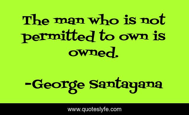 This page presents the quote "The man who is not permitted to own is owned.". Author of this quote is George Santayana. This quote is about communism, government, freedom, taxation, statism, non-aggression-principle, liberty, slavery, socialism,.