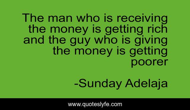 This page presents the quote "The man who is receiving the money is getting rich and the guy who is giving the money is getting poorer". Author of this quote is Sunday Adelaja. .