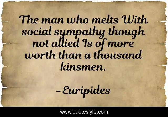 This page presents the quote "The man who melts With social sympathy though not allied Is of more worth than a thousand kinsmen.". Author of this quote is Euripides. .