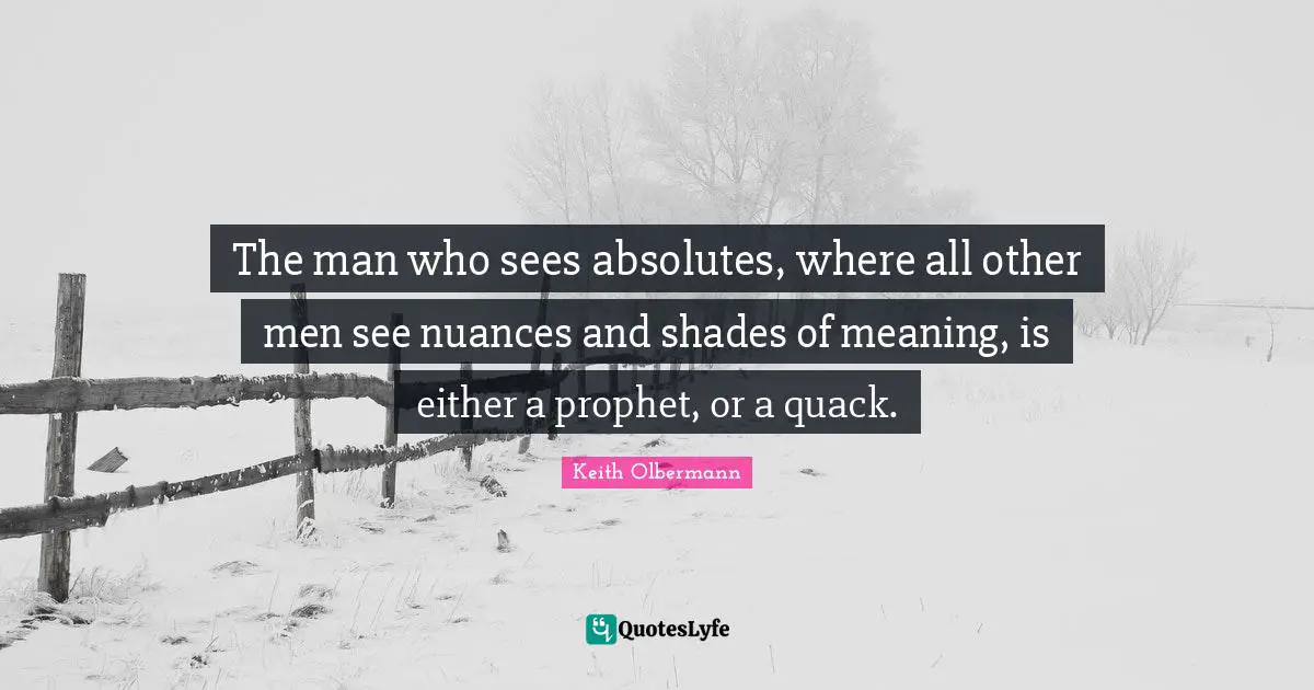 "Keith Olbermann Quotes." Quoteslyfe.com, 2025. Mon. 29 Dec. 2025. <https://www.quoteslyfe.com/quote/The-man-who-sees-absolutes-where-all-784657>.