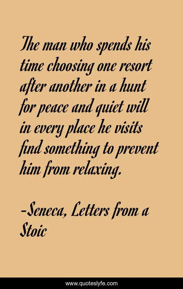 This page presents the quote "The man who spends his time choosing one resort after another in a hunt for peace and quiet will in every place he visits find something to prevent him from relaxing.". Author of this quote is Seneca, Letters from a Stoic. .