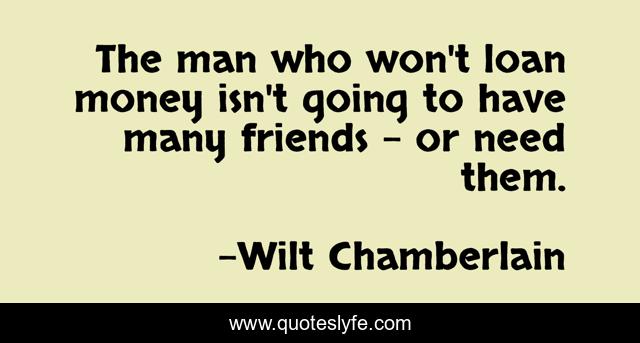 This page presents the quote "The man who won't loan money isn't going to have many friends - or need them.". Author of this quote is Wilt Chamberlain. This quote is about loan, friends, man,.