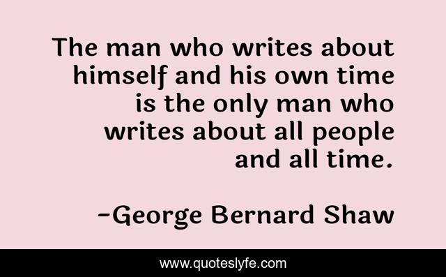 This page presents the quote "The man who writes about himself and his own time is the only man who writes about all people and all time.". Author of this quote is George Bernard Shaw. This quote is about enthusiasm, inspirational, universal-truths,.