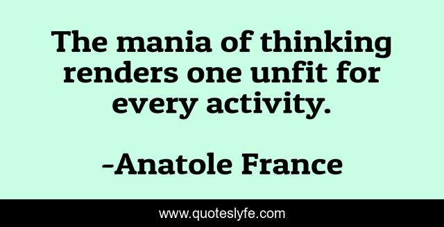 "Anatole France Quotes." Quoteslyfe.com, 2025. Fri. 05 Dec. 2025. <https://www.quoteslyfe.com/quote/The-mania-of-thinking-renders-one-unfit-263098>.