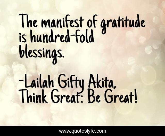 "Lailah Gifty Akita, Think Great: Be Great! Quotes." Quoteslyfe.com, 2025. Sat. 06 Dec. 2025. <https://www.quoteslyfe.com/quote/The-manifest-of-gratitude-is-hundred-fold-147686>.