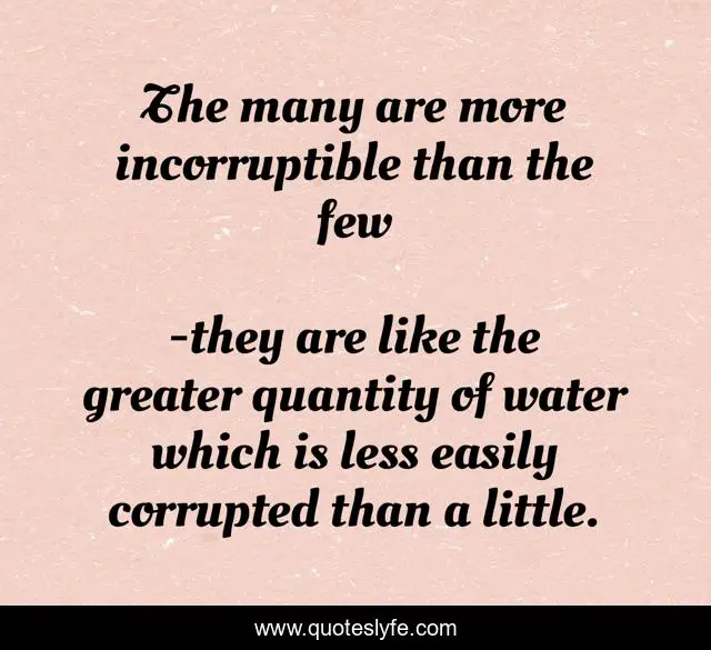 "they are like the greater quantity of water which is less easily corrupted than a little. Quotes." Quoteslyfe.com, 2025. Sun. 07 Dec. 2025. <https://www.quoteslyfe.com/quote/The-many-are-more-incorruptible-than-the-200265>.