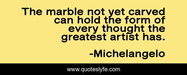 This page presents the quote "The marble not yet carved can hold the form of every thought the greatest artist has.". Author of this quote is Michelangelo. This quote is about thought, greatest, artist,.