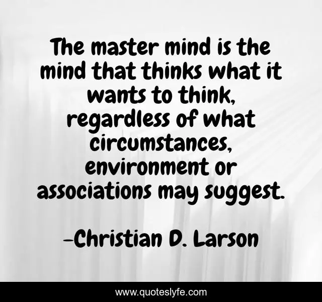 This page presents the quote "The master mind is the mind that thinks what it wants to think, regardless of what circumstances, environment or associations may suggest.". Author of this quote is Christian D. Larson. This quote is about suggest, mind, thinks, environment, master, think, circumstances,.