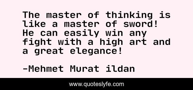 This page presents the quote "The master of thinking is like a master of sword! He can easily win any fight with a high art and a great elegance!". Author of this quote is Mehmet Murat ildan. .