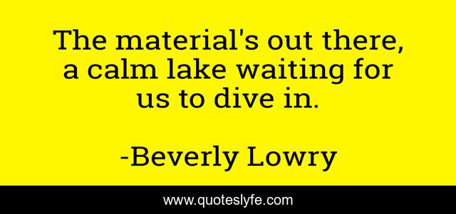 This page presents the quote "The material's out there, a calm lake waiting for us to dive in.". Author of this quote is Beverly Lowry. This quote is about art, writing,.