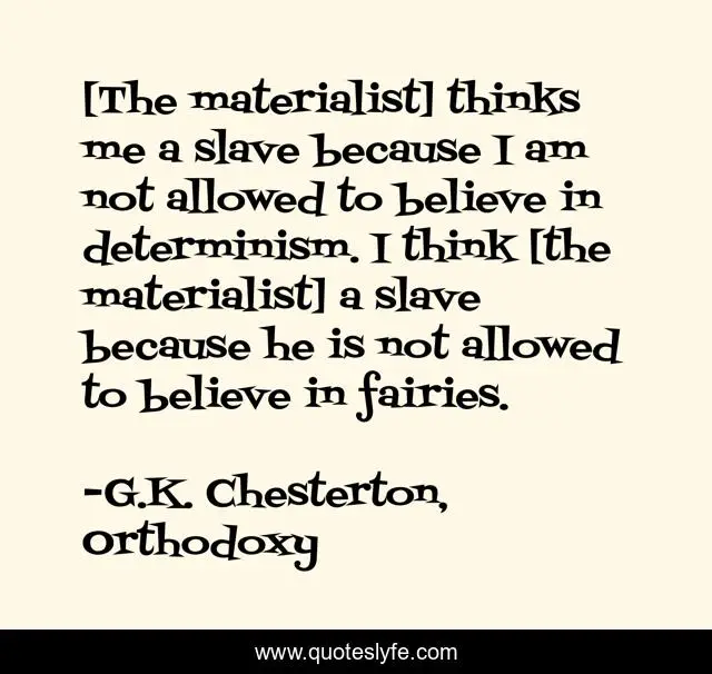"G.K. Chesterton, Orthodoxy Quotes." Quoteslyfe.com, 2025. Sat. 06 Dec. 2025. <https://www.quoteslyfe.com/quote/The-materialist-thinks-me-a-slave-because-236638>.