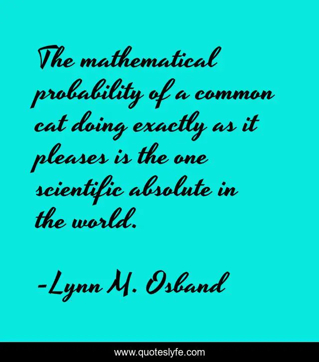 "Lynn M. Osband Quotes." Quoteslyfe.com, 2025. Sat. 13 Dec. 2025. <https://www.quoteslyfe.com/quote/The-mathematical-probability-of-a-common-cat-222660>.