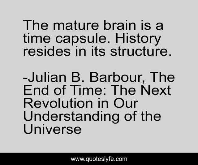 This page presents the quote "The mature brain is a time capsule. History resides in its structure.". Author of this quote is Julian B. Barbour, The End of Time: The Next Revolution in Our Understanding of the Universe. .