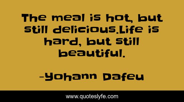 This page presents the quote "The meal is hot, but still delicious.Life is hard, but still beautiful.". Author of this quote is Yohann Dafeu. This quote is about life, positive, motivational, motivation, optimistic, inspirational, life-philosophy, enthusiasm, confidence,.