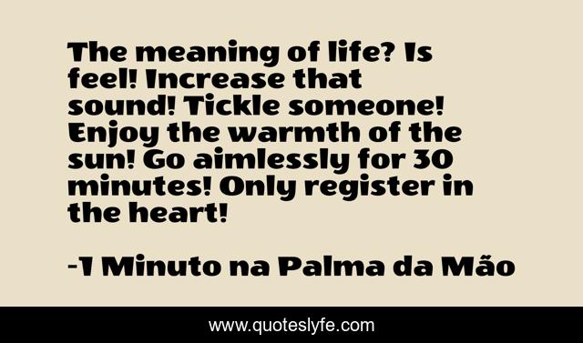 "1 Minuto na Palma da Mão Quotes." Quoteslyfe.com, 2025. Sat. 06 Dec. 2025. <https://www.quoteslyfe.com/quote/The-meaning-of-life-Is-feel-Increase-17075>.