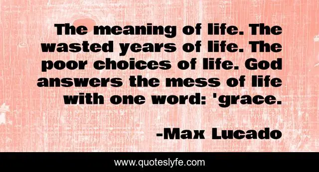 This page presents the quote "The meaning of life. The wasted years of life. The poor choices of life. God answers the mess of life with one word: 'grace.". Author of this quote is Max Lucado. This quote is about life, god, inspirational, max-lucado, enthusiasm, decisions, grace,.