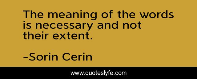 This page presents the quote "The meaning of the words is necessary and not their extent.". Author of this quote is Sorin Cerin. .