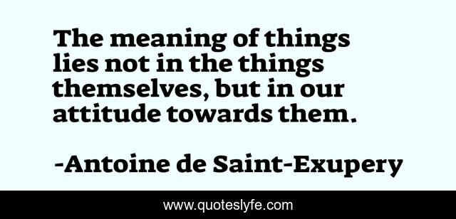 This page presents the quote "The meaning of things lies not in the things themselves, but in our attitude towards them.". Author of this quote is Antoine de Saint-Exupery. This quote is about things, meaning, themselves,.